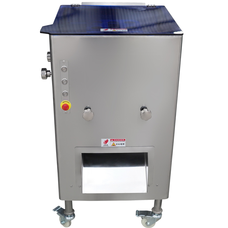 本公司生產的切肉絲肉片機,機身整體都采用了304不銹鋼進行制作,鋼板的厚度可達到3mm,底部配備萬向輪方便移動固定。