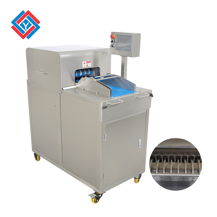 這款切肉丁機(jī)整體采用了不銹鋼制作,機(jī)身鋼板厚度達(dá)到了3mm,表面使用了拋光拉絲處理工藝,優(yōu)化衛(wèi)生方便清洗,切肉丁機(jī)的刀片是不銹鋼材質(zhì),特別淬火加工過后,可用鋒利的刀片將鮮肉開條再切塊,切割紅殺肉塊的肉丁迅速且大小均勻,機(jī)身同時(shí)還采用了快拆式刀組,方便更換加工其他肉類,省去了大量的人工成本。