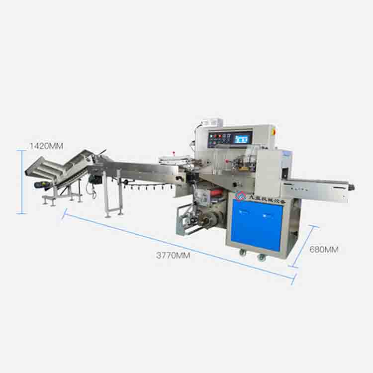 技術參數: 型號:JYB-350 袋子形狀:背帶式包裝(可定制) 縱封/橫封紋路:網紋式包裝/直紋式包裝 卷膜直徑:350mm 制袋寬度:50-160mm 可選配置:打碼機 充氣裝置 烙餅器 料理機 包裝材料:能單面熱封包裝膜材料 電壓:220V 功率:2.6kw 機器尺寸:4020*770*1450mm 機器重量:580kg 制袋長度:65-190/120-280mm